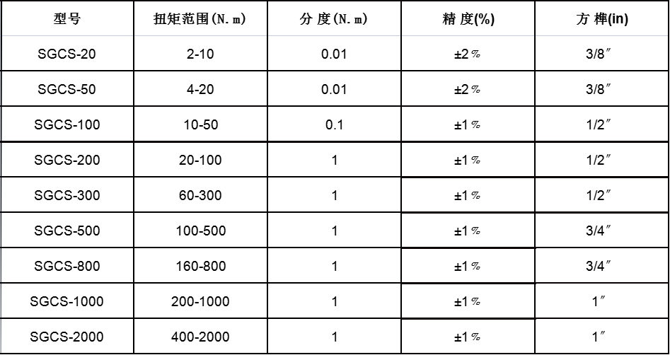 扭矩信號無線傳輸扳手規(guī)格型號
